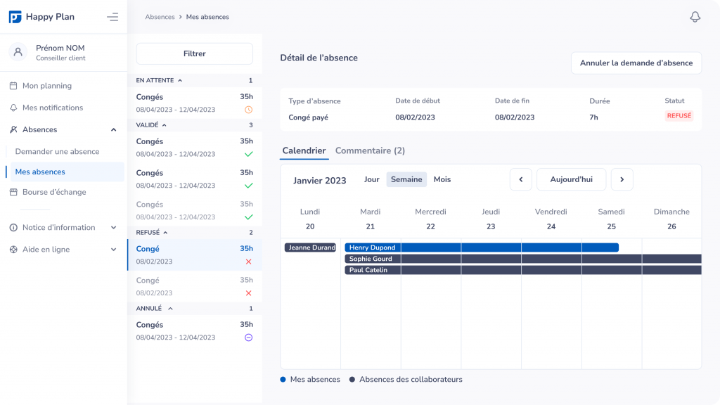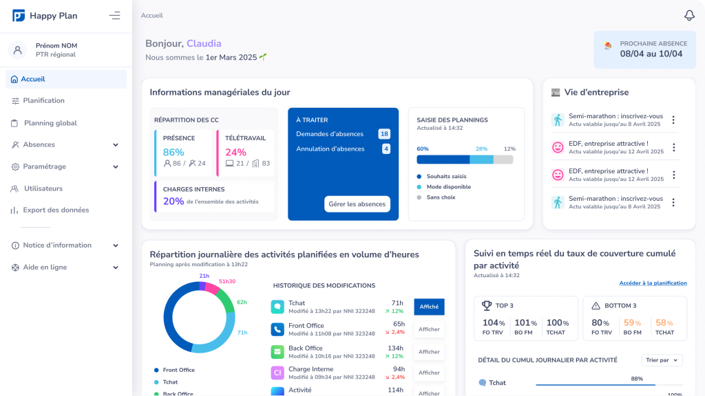 Le logiciel est utilisé par des chargés de planification et des conseillers clients.
